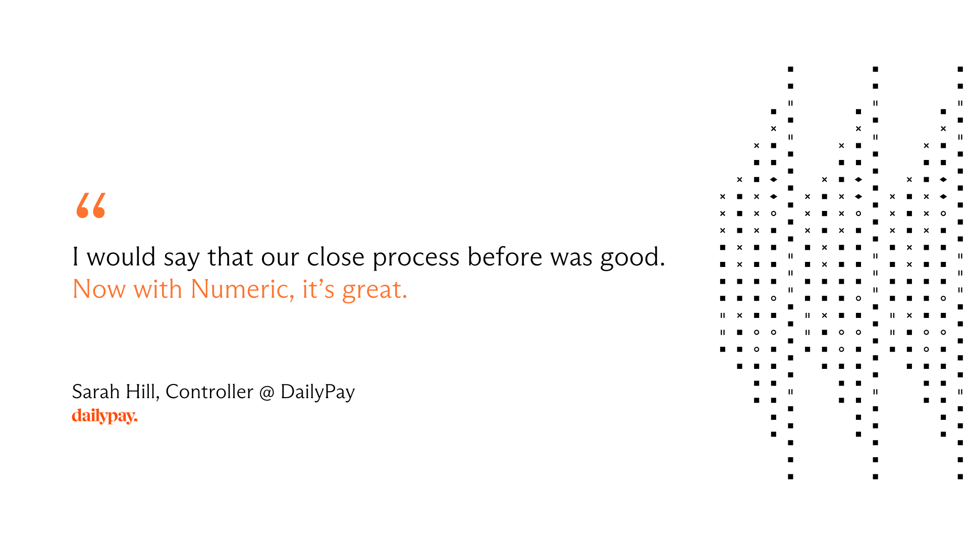 At the end of the day, as Controller, Sarah is focused on “providing line of sight to executive leadership, to make decisions and to provide transparency to our financial status”. By implementing Numeric the DailyPay team has graduated from “good” to “great” during month-end, delivering accurate, timely financial data with less time spent in spreadsheets.