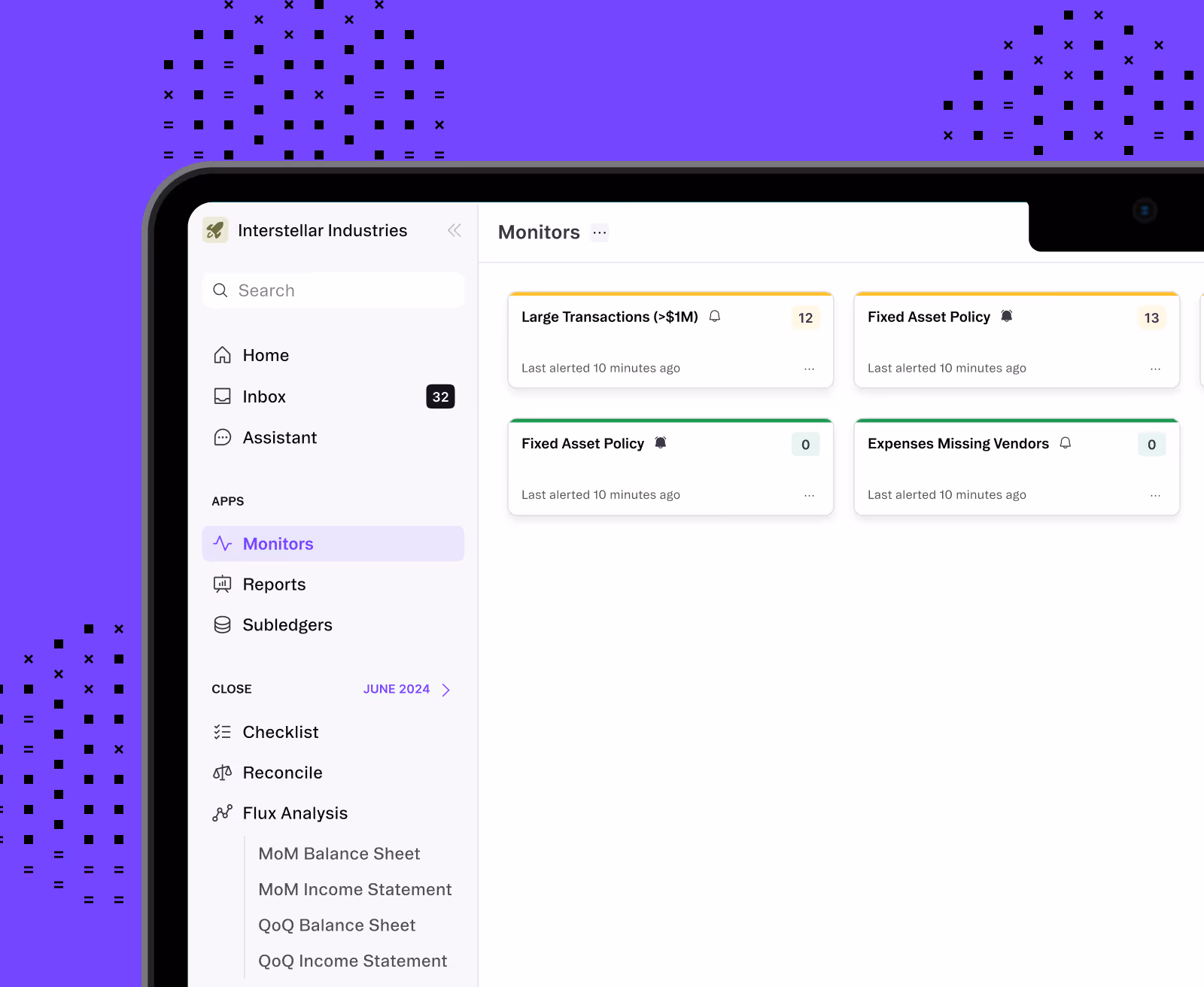 As accounting teams scale, monitors give Controllers greater visibility into the team’s work and confidence in financials passed along to the CFO.