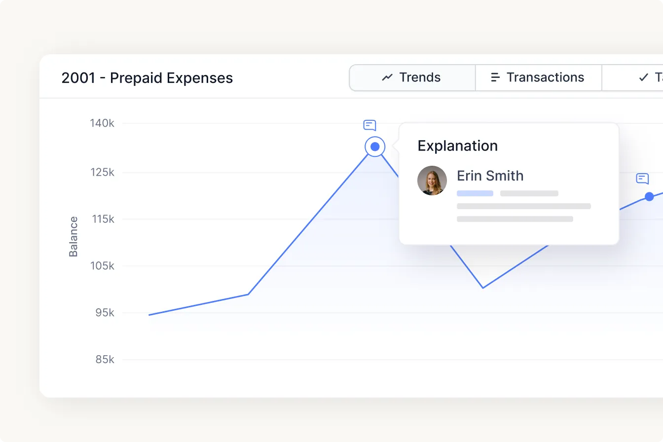 Easily view account trendlines and prior-period explanations to quickly understand shifts in your financials and inform explanations.
