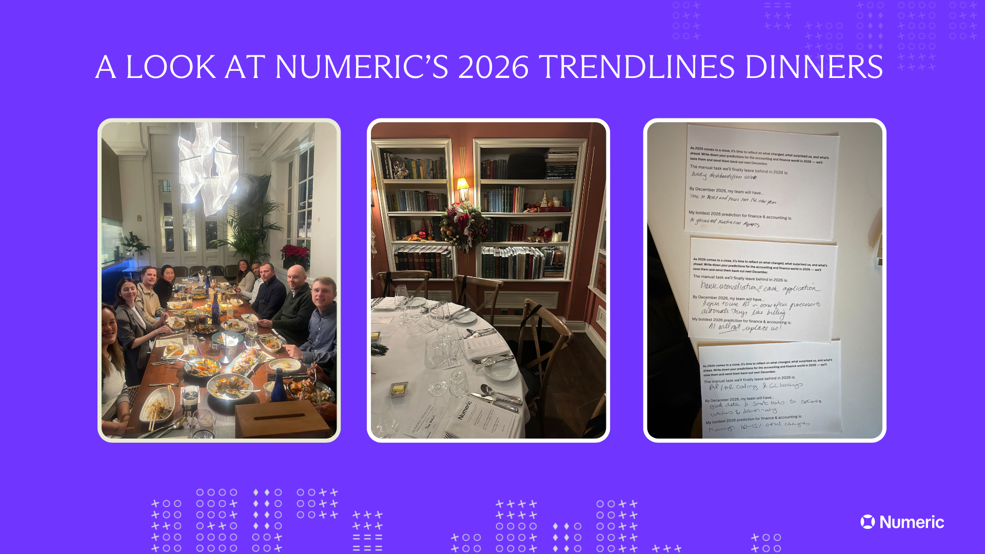 At the top of December, we hosted our Trendlines dinner series —a three-city experiment designed to take the pulse of finance leaders heading into 2026. Across San Francisco, New York, and London, we gave our guests a short “Trendlines Card” and asked them for their predictions, frustrations, and hopes for the upcoming year.