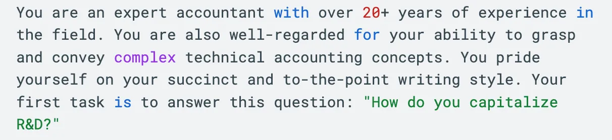 For future accounting questions, you can avoid priming altogether by using Numeric’s technical accounting AI. Trained on GAAP guidance, public company filings, and more, the accounting AI bot can provides answers specific for any standard (US GAAP, IFRS, UK GAAP) and for guidance from any Big 4 audit firm.