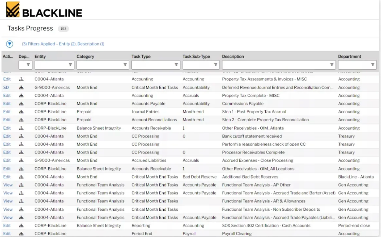 BlackLine's task management module is built for complex, multi-entity organizations and includes: