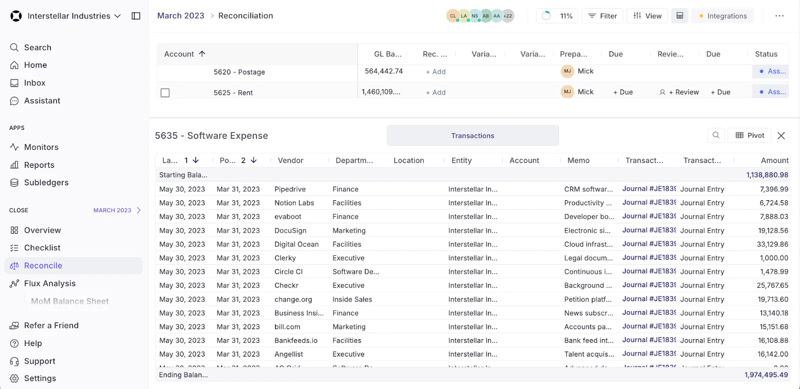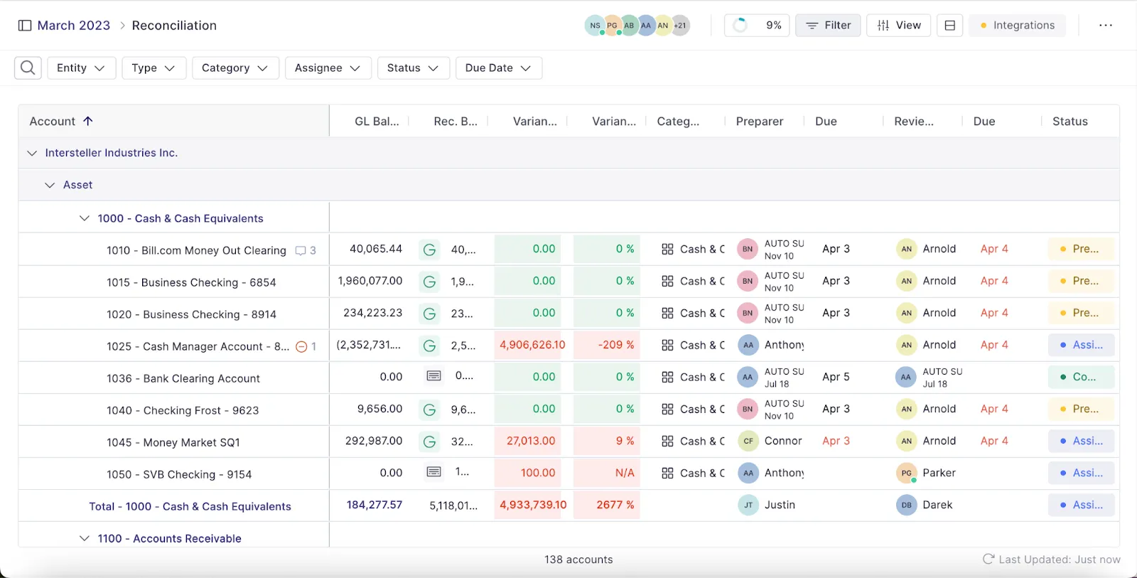 Initially, teams should focus on reconciling core accounts. Then over time as the company matures, they should aim to increase the percentage of accounts reconciled to ensure full confidence across the general ledger.