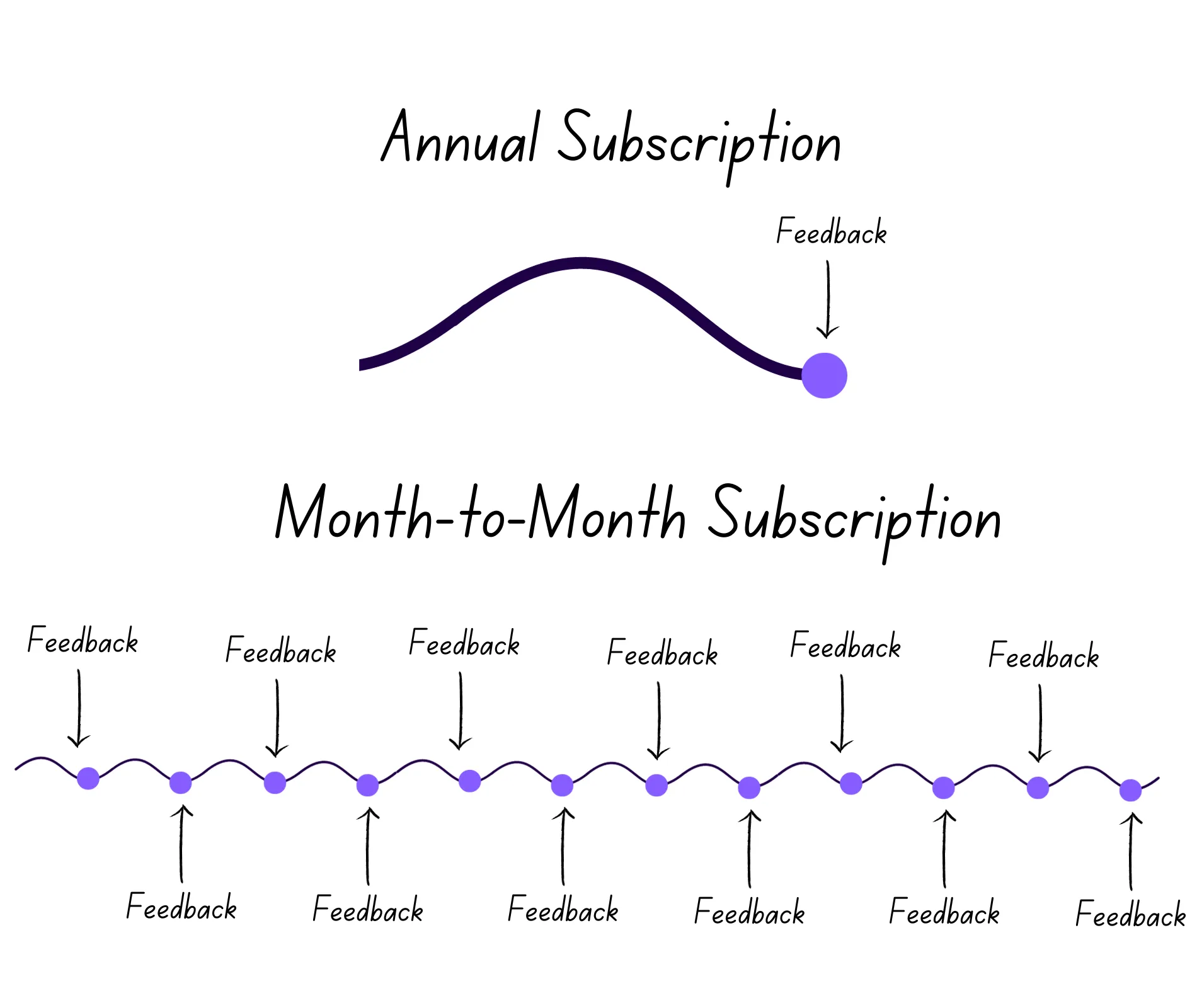 Offering month-to-month subscriptions is a way to more quickly test product-market fit. If your product sucks, you know much sooner rather than later and you have hedged against falling into the trap of building a beautiful, but functionally useless product.