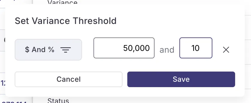 Numeric makes it easy to implement materiality thresholds on an account-by-account level for balance sheet reconciliations – teams can bring in whatever method they typically use to gauge materiality – a dollar amount, a percentage, or a combination of the two. Account balances that are above the threshold will display red, while immaterial variances are green and can be toggled on and off from your dashboard.