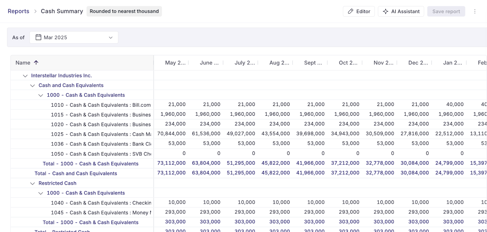 Because Rillet integrates directly with other enterprise tools like Salesforce and Ramp, it’s able to ingest data in structured form, eliminating the need for the data to be cleaned or normalized before it’s ready for reconciliation or AI-powered analysis.