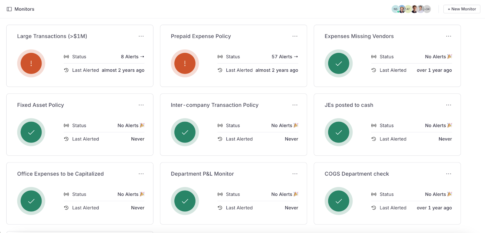 Set-up ongoing transaction monitoring: With Monitors, you can flexibly set-up ongoing alerts to catch errors ahead of month-end account reconciliations. Catch any transactions tied to particular customers or, for Controllers doing a quality check of the full month-end process, surface all journal entries booked to A/R to scan through.