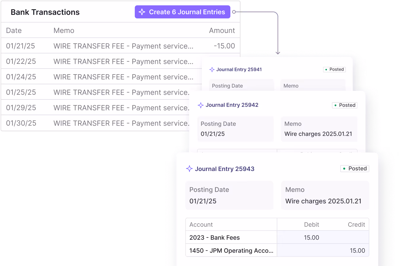 Save days on manual cash matching and journal entry drafting. Automate 90%+ of your bank recs, batch post journal entries with one click, and get real-time visibility into all of your cash positions.